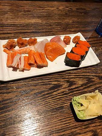 生魚片沒有台灣的厚,這沒辦法,而且鮪魚沒有只給生魚片的,一定要做成壽司,就跟某人一定要走日本傳統吃法,堅持用手抓壽司,並一口性感地含下去。