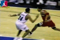 如果對手要背框單打喬丹,喬丹除了還是可以撥球干擾之外,他那變態的彈跳所帶來的覆蓋範圍,已大大的形成對手的恐懼!
